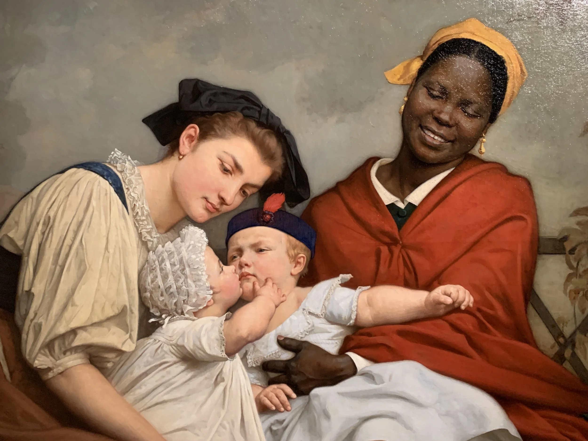 The last glimmers of academic painting in the exhibition appeared to Krissy matter-of-factly, with a direct curiosity that can only be present without an ideological bent harboring the intellect. In, “Le baiser enfantin,” by Feyen, Amy saw the baby’s spoiled look, the black nanny’s genuine smile, the statue-esque detachment of the white mother, and the rich quality of the paint glimmering on the surface.