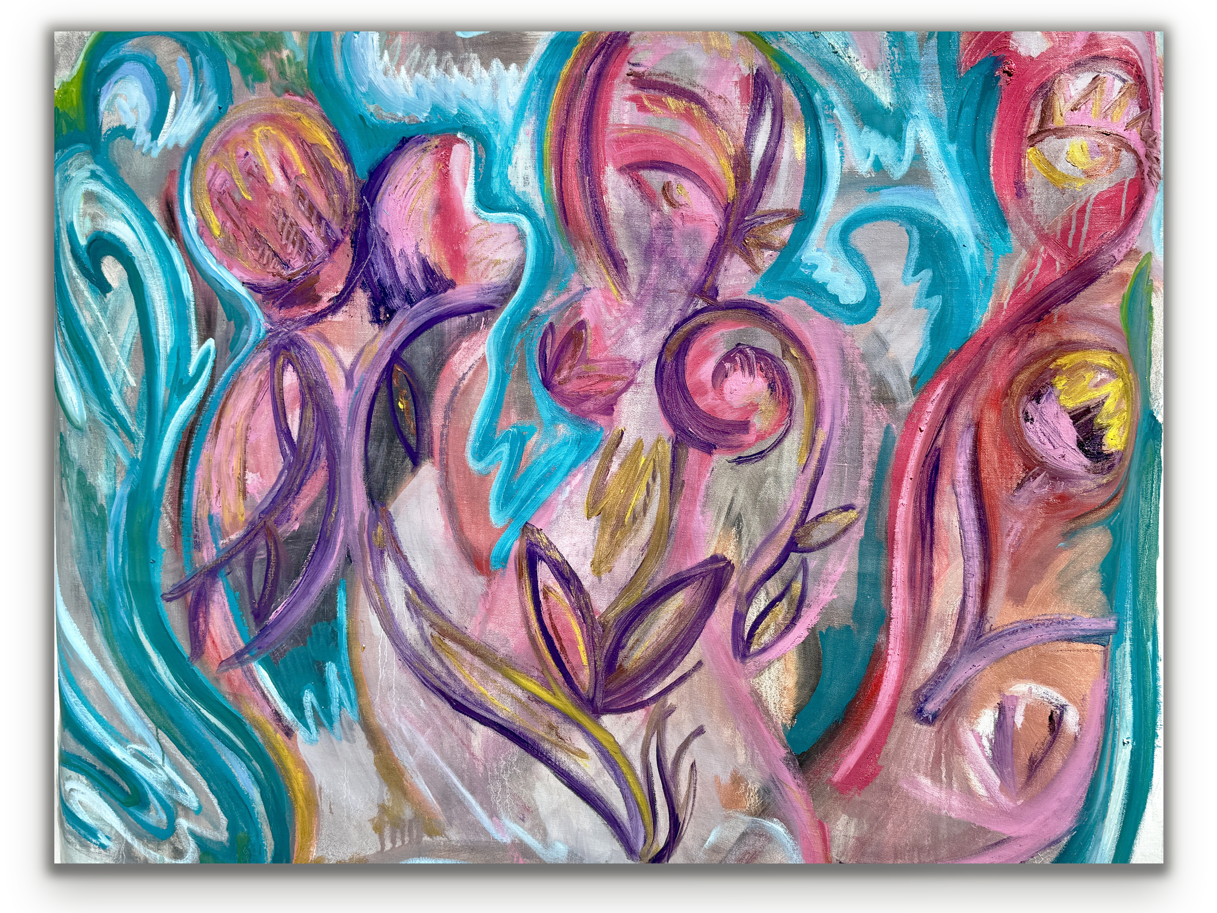 “Fruition (Three Graces)” oil paint on linen, 46 x 58 inches. 2024.