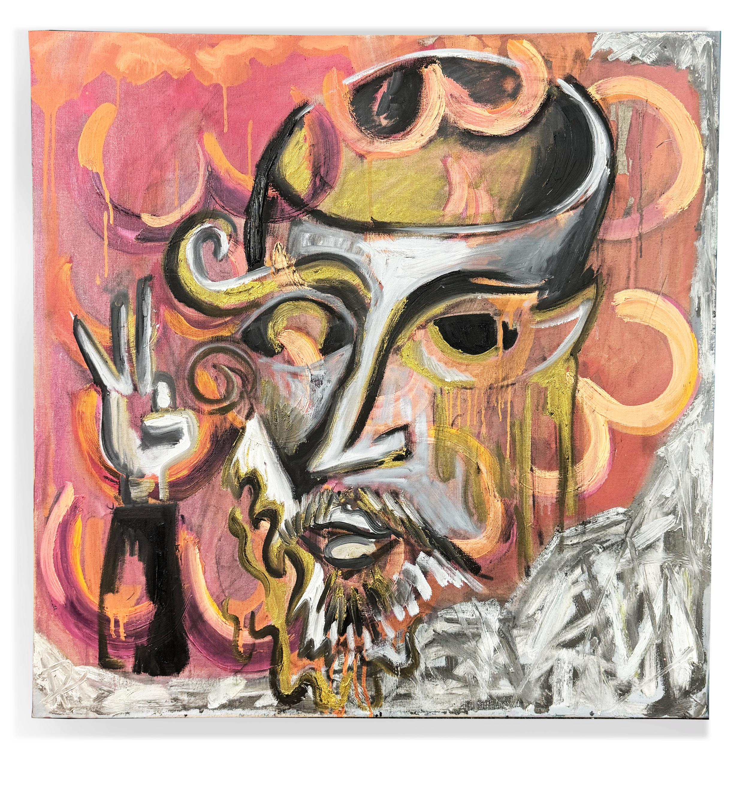 “My Lech Lecha,” acrylic and spray paint on cardboard, 40 x 40 inches. 2026.