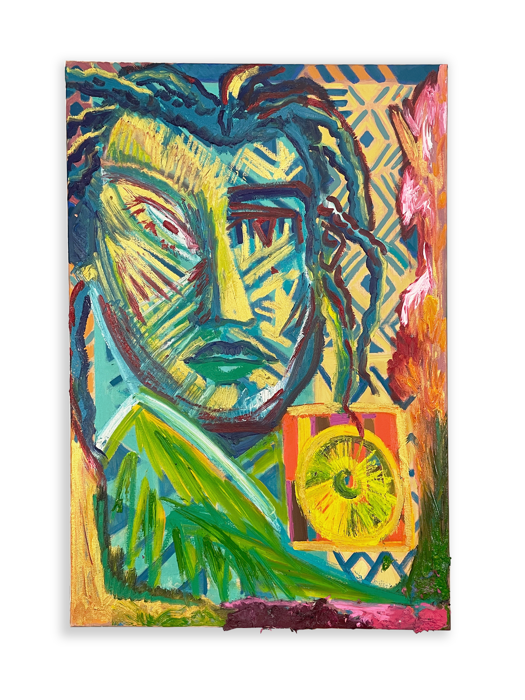 “Portrait of 24kGoldn,” oil on linen, 24 x 36 inches, 2023.
