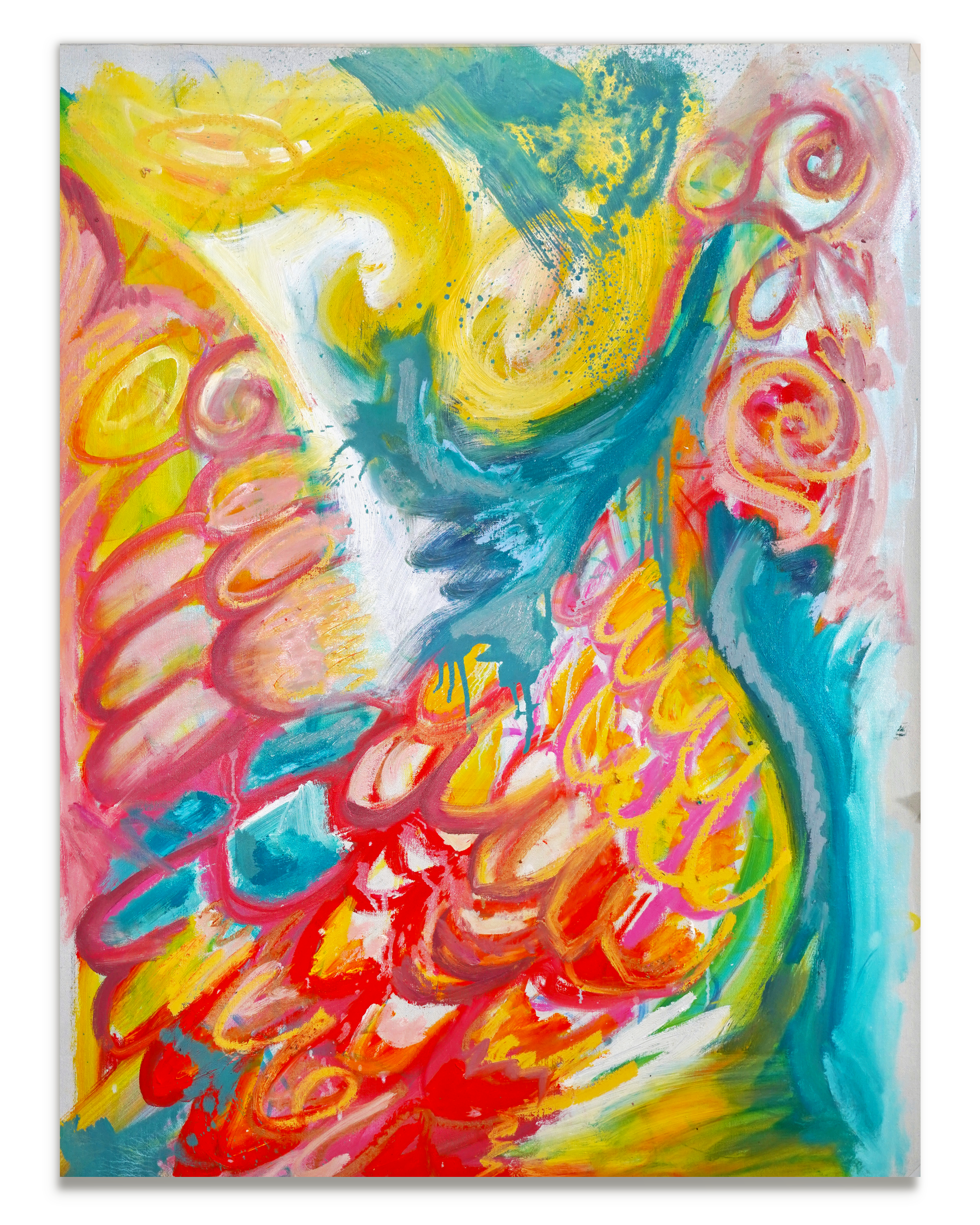 “Fruition in Ecstasy (Your Eyes Water),” oil paint on linen, 72 x 48 inches. 2024.
